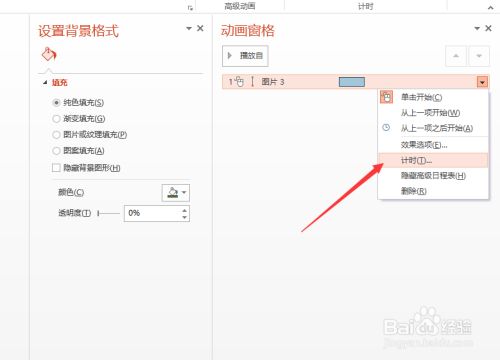 接下来,我们在其动画窗格界面中右击响应的动画,从其欲见列表中选择即时结果,并在弹出的结果列表中按如图所示进行设置。