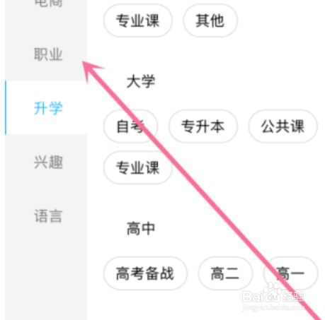 3.随后选择需要进修的课程类型。