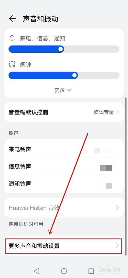 进入页面后,点击更多声音和振动设置。