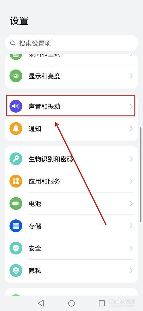 打开手机设置,点击声音与振动。