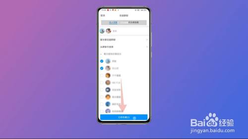 选择需要插手群聊的老友,再点击右上方简直定按钮即可当作功建群。