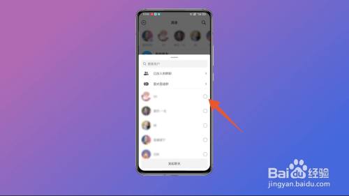 找到需要插手群聊的老友,点击该老友后面的小圈。