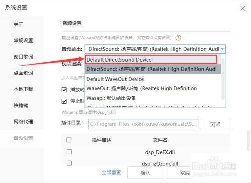 5.进入“音频设置”界面后,点击“音频输出”右侧的下拉框。