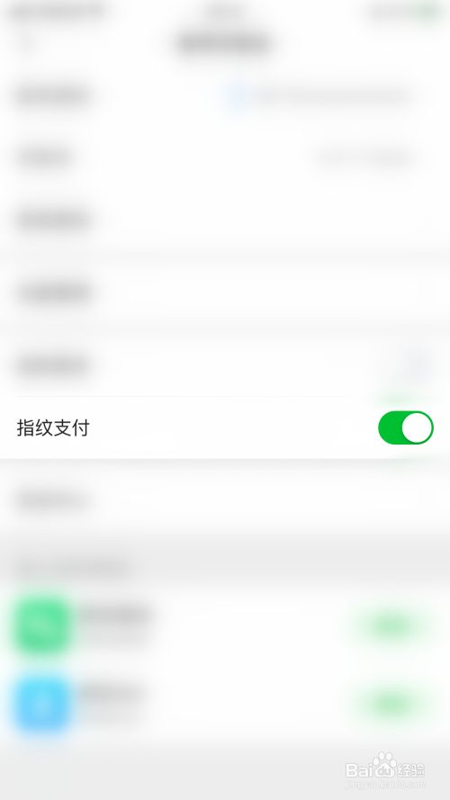 账号与平安设置界面点击“指纹支付”后面的圆点