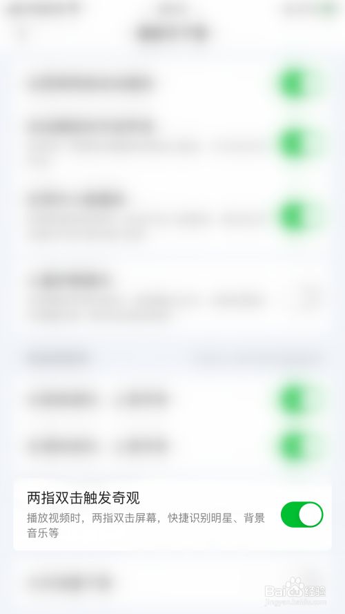 “两指双击触发奇不雅”后面的圆点变为绿色即暗示启用爱奇艺两指双击触发奇不雅当作功