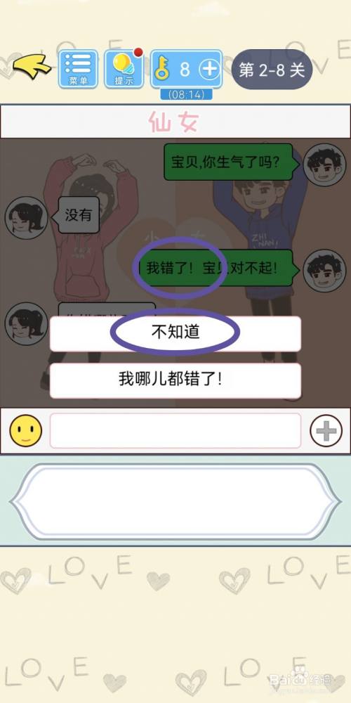 游戏中前两次对话,别离选择【我错了】【不知道】。