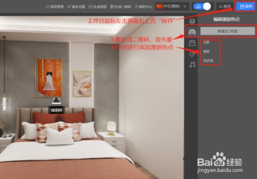 当我们添加完“漫游热点”,也就是过门标签后,就可以将全景进行分享,鼠标左键点击界面上方“保留”。