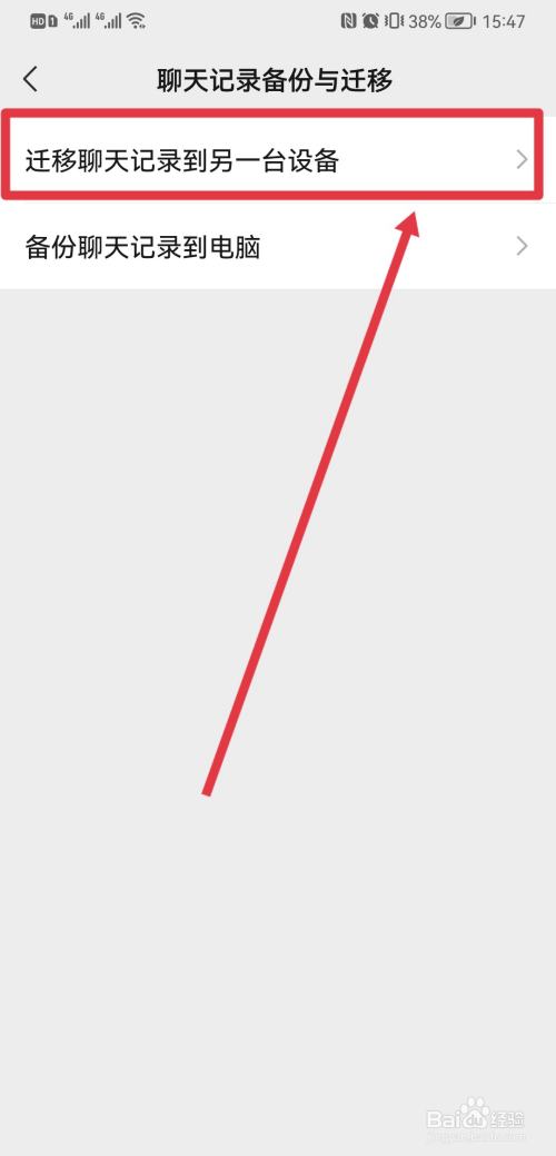 进入聊天记实备份与迁徙,选择迁徙聊天记实到另一台设备。