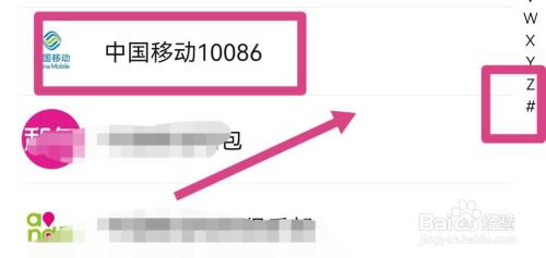 在公家号页面,点击右侧的字母z,在z字母项下进入中国移动10086。