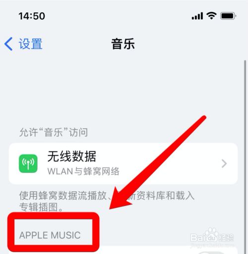 在音乐设置页,找到“APPLE MUSIC”设置栏。