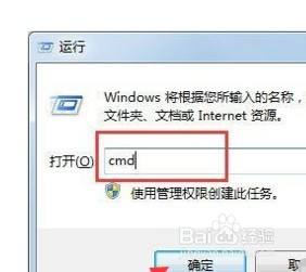 打开运行窗口,输入cmd号令,点击确定。