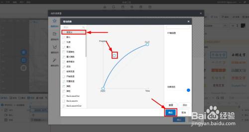 第三步:在高级选项中点击【位移曲线】,在【缓动函数】界面中点击【自界说】,用鼠标左键设置移动速度后点击【确定】按钮。