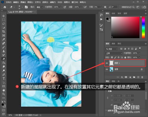 这样就新建了一个图层。在没有放置其它元素之前它都是透明的。