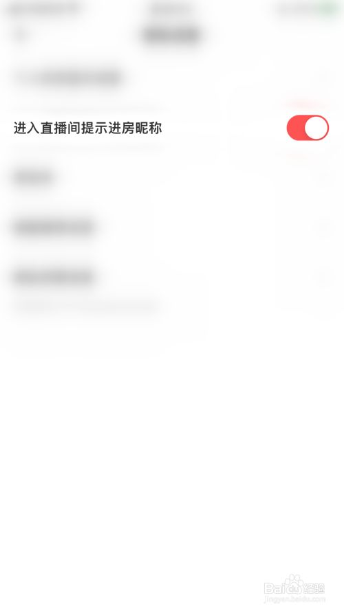 隐私设置界面点击“进入直播间提醒进房昵称”后面的圆点