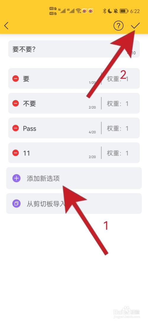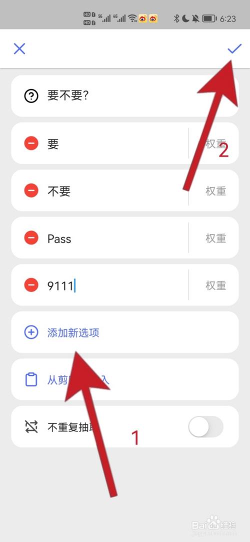 点击添加新选项功能,进行添加选项,而且反复操。选项添加完毕后,点击页面右上角