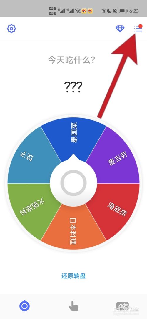 进入小决议2App后,点击右上角更多标记,进入新增转盘功能。