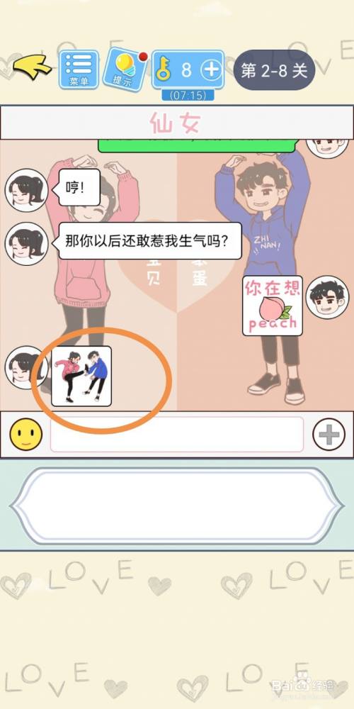女生问男生还会不会再犯错时,点击选项【发生脸色包在想peach】.