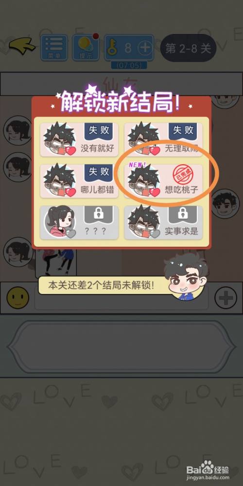 这样,游戏第2-8关就可以解锁【想吃桃子】终局了。