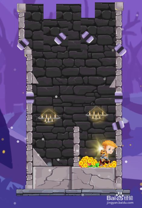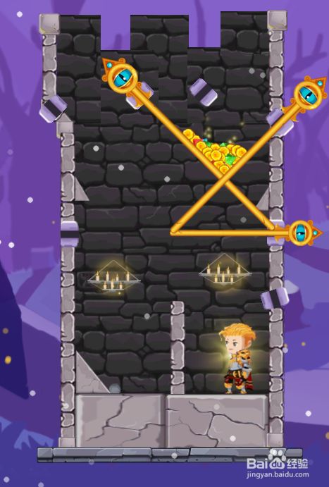 斜插销打开,宝藏失落在地上,少年获得宝藏,如图。这样就过关了。