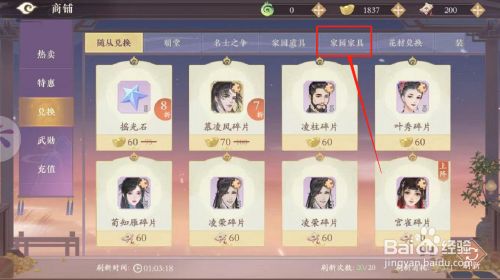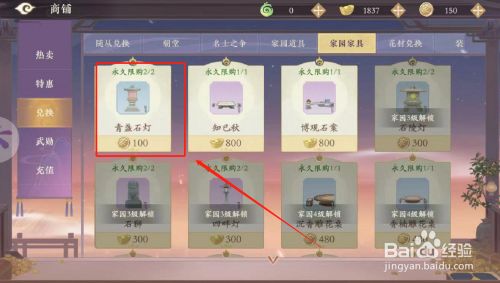 工具/原料苹果11IOS14.4凌云诺1.1.4.0方式/步骤1点击游戏页面顶部的“商铺”按钮2点击左侧的“兑换”,进入兑换页面3点击“家园家具”选项4选择家具青盏石灯5点击弹框底部的红色按钮6完当作操作,获得家具青盏石灯END注重事项小我经验仅供参考