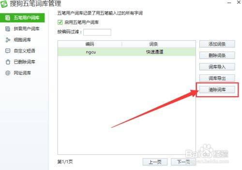 如下图所示。 我们在“五笔用户词库”设置界面,点击(断根词库)进入页面。