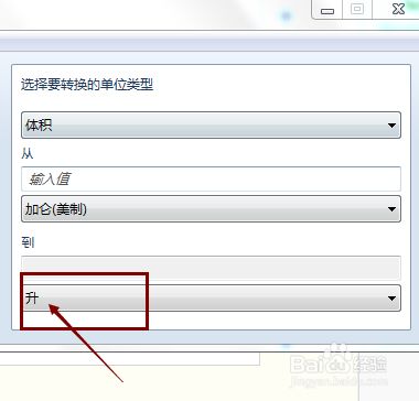 要转换的体积单元则选择是升。