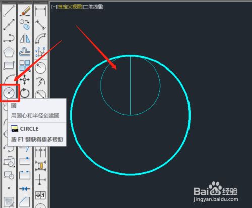 之后删除线段,利用“修剪”东西,别离修剪两个内圆的左半边和右半边。