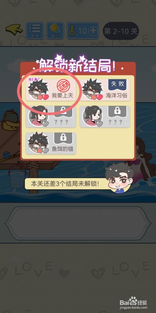 这样,本关游戏就顺遂解锁【我要上天】终局了。