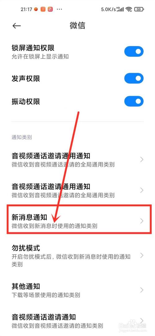 进入微信通知设置,点击【新动静通知】。