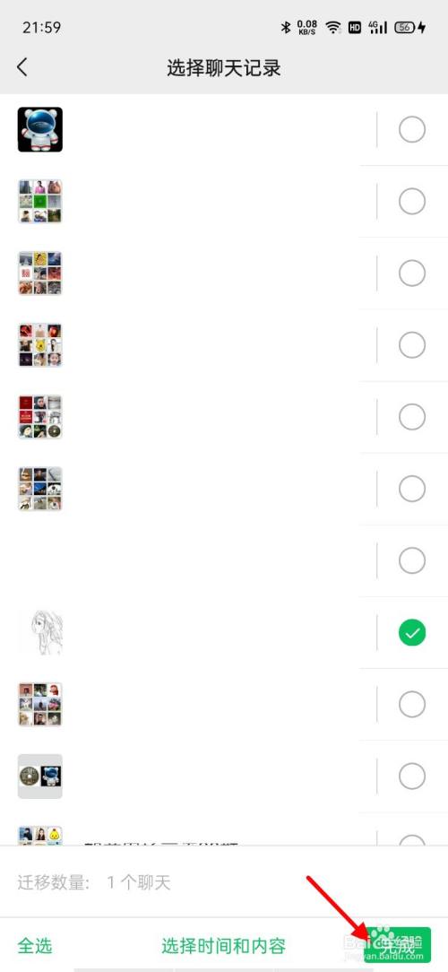 进入聊天迁徙界面,直接单击选择聊天记实选项。
