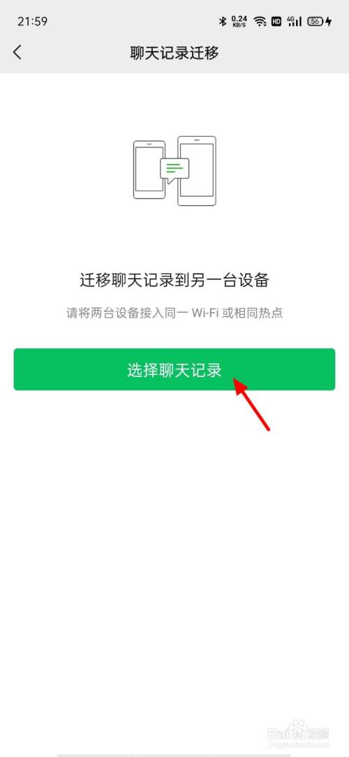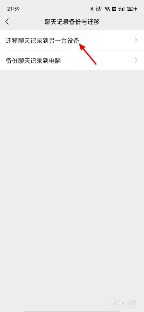 在迁徙界面,接着单击迁徙聊天记实到另一台设备选项。