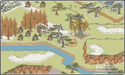 第80个使命吟诗解锁新区域后,上一个台阶处有1把宝箱钥匙;找到河滨的钱树子,获得补天石等奖励。