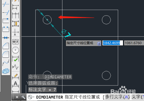 双击孔径尺寸,输入“4×φ7”即可。