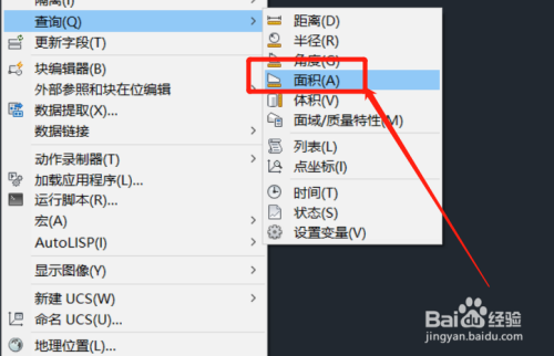 打开cad东西下拉菜单,点开“查询”功能列表。