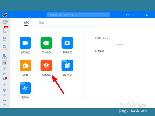 在钉钉首页,点击会议。