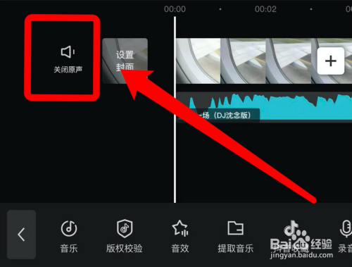 回到剪辑界面,点击“封闭原声”功能。