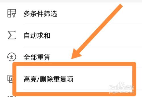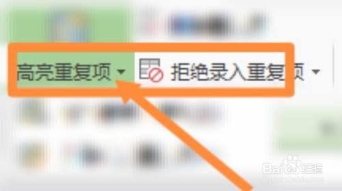 在数据页面中选择点击高亮/删除反复项。