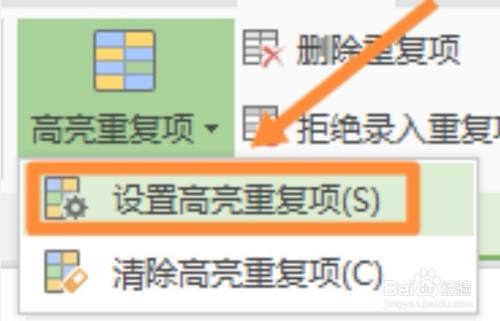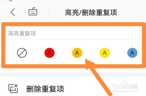 点击设置高亮反复项,选择颜色后可把反复项标识表记标帜颜色筛选出来。