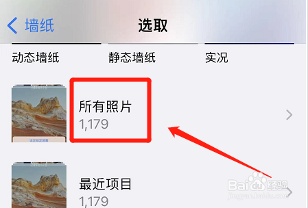此外,在墙纸拔取界面点击“所有照片”选项。
