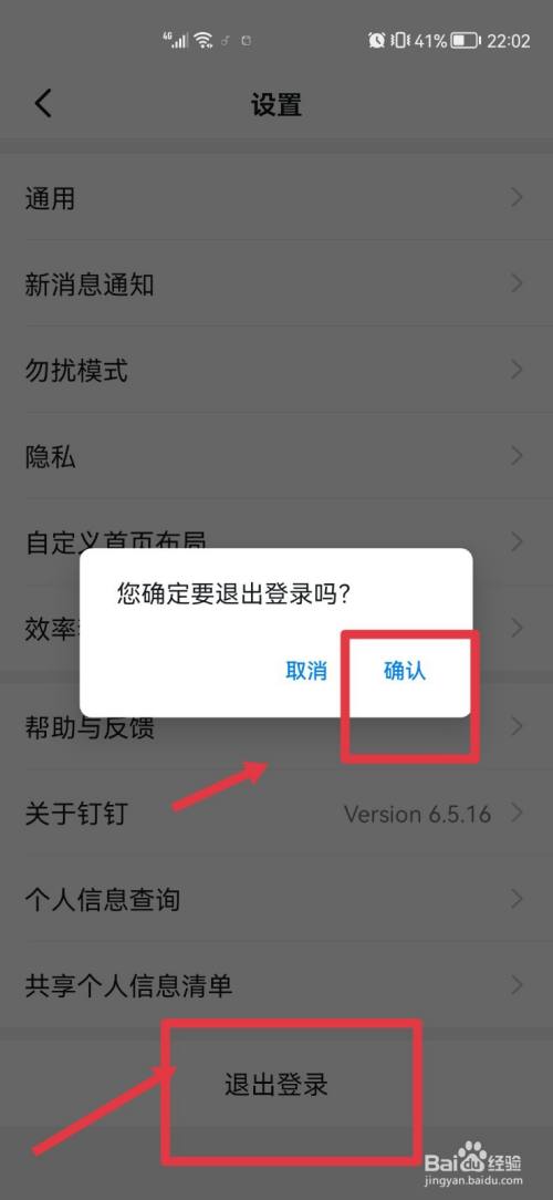 在设置页面下滑到最底部点击退出登录,在弹出页面中点击确认。