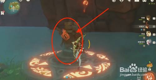 利用火元素进犯,点亮进口处的4个火炬解锁火元素方碑。