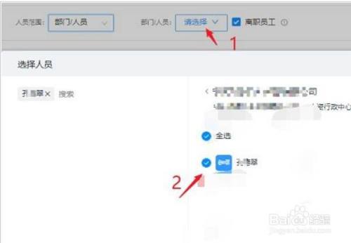 第六步、点击“部分/人员”边上的“请选择”,在打开的组织机架窗口中勾选要查找的人员。