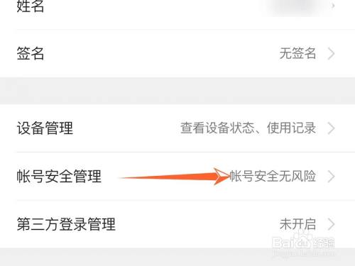 点击【帐号平安办理】。