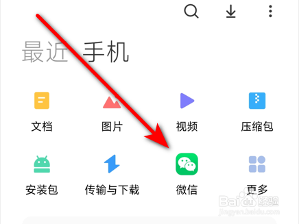 在手机文件办理中打开微信,选择下载好的文件,长按选中。
