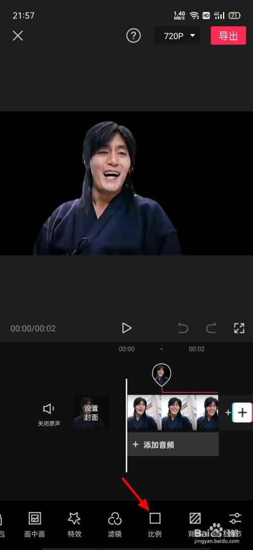 在比例页面,选中【9:16】,点击【导出】,退出剪映。