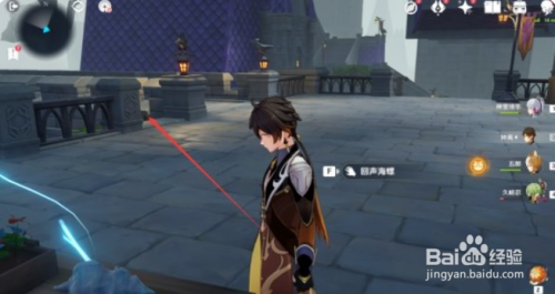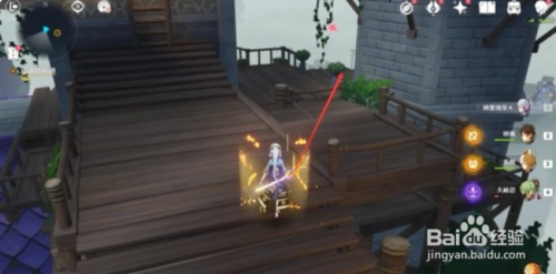在捡完海螺之后大师先别急着走,先往如图所示的处所看,在这里有一个楼梯和一个平台,往下跳之后我们就能看到本秘境的第一个宝箱啦