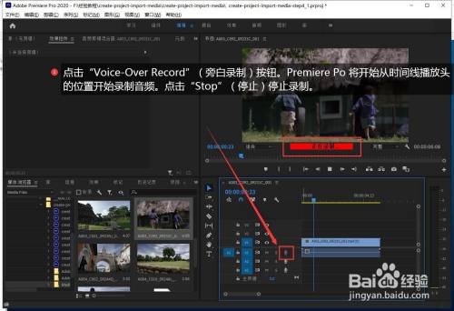 点击“Voice-Over Record”(旁白录制)按钮。Premiere Po 将起头从时候线播放头的位置起头录制音频。点击“Stop”(遏制)遏制录制。