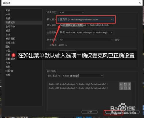 在弹出菜单默认输入选项中确保麦克风已准确设置。