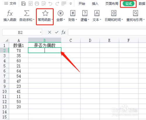 单击B2单位格,点击【公式】-【常用函数】-【插入函数】-弹出【插入函数】对话框.