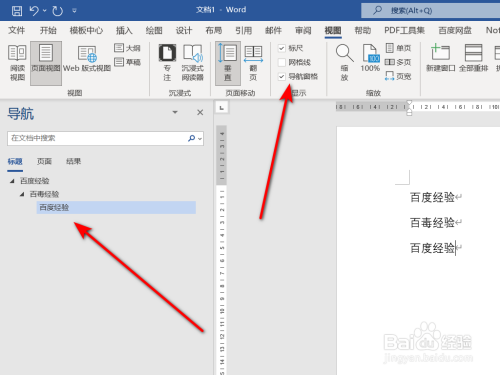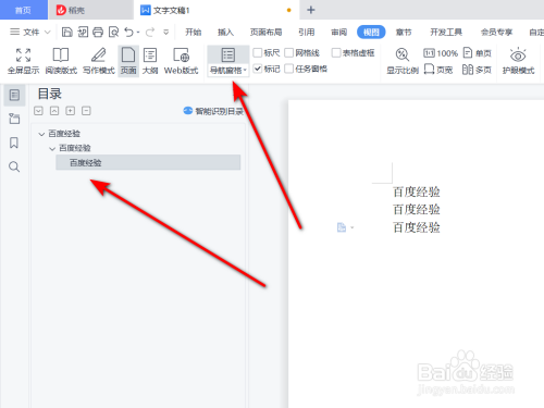 在视图菜单栏中打开导航窗格,在左侧即可看到分歧级别纲领显示分歧。